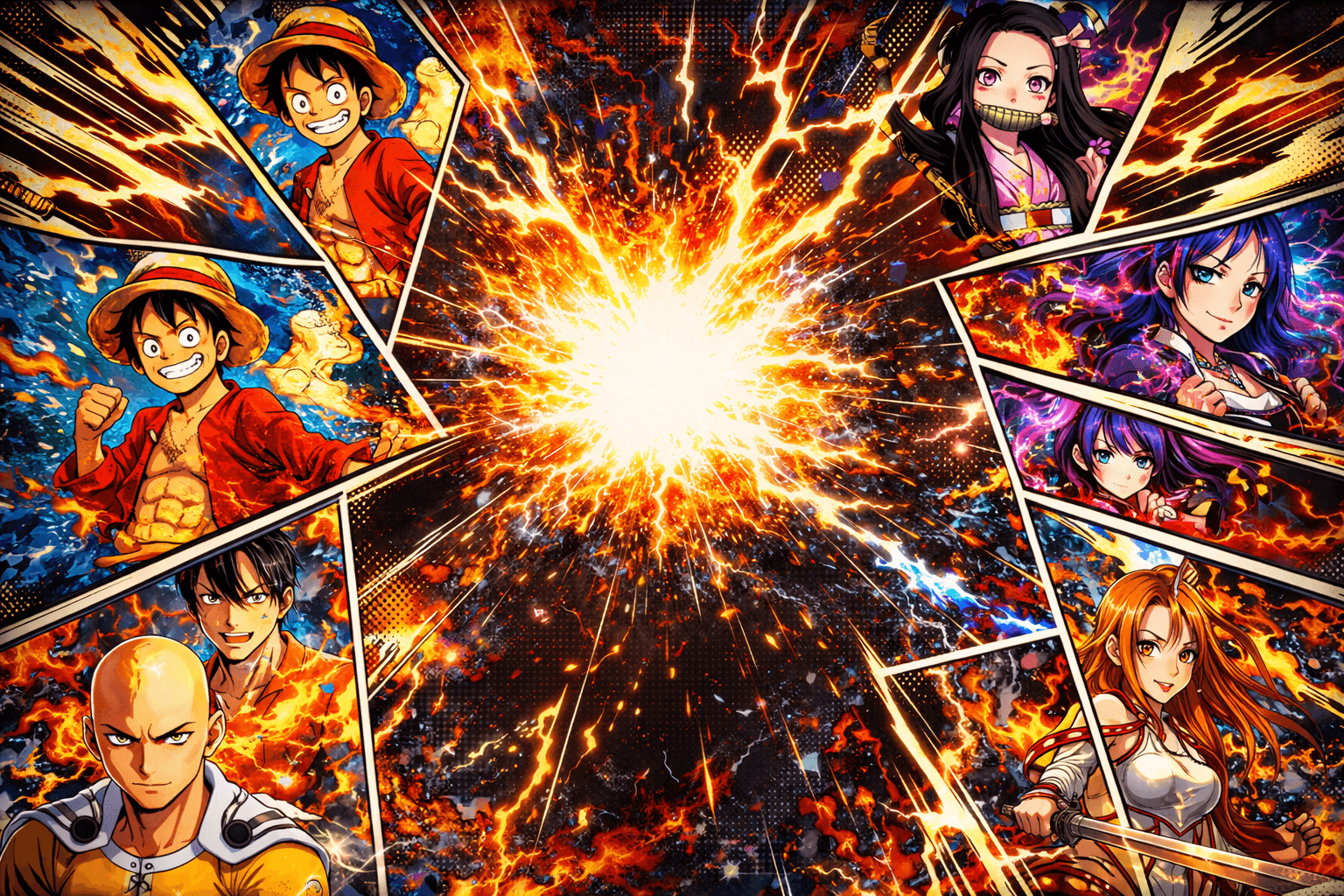 Shonen, Shojo, Seinen — pick a preset or craft your own look.
